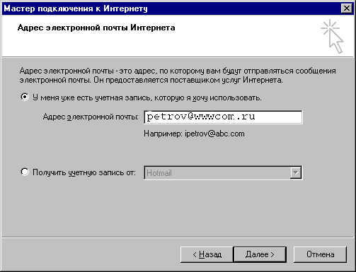Ваш адрес элктронной почты вида yourname@wwwcom.ru (Ваш e-mail записан в контракте).