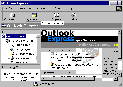 1. Запустите программу Outlook Express выбрав иконку с этой программой на рабочем столе или найдя ее в меню Пуск.